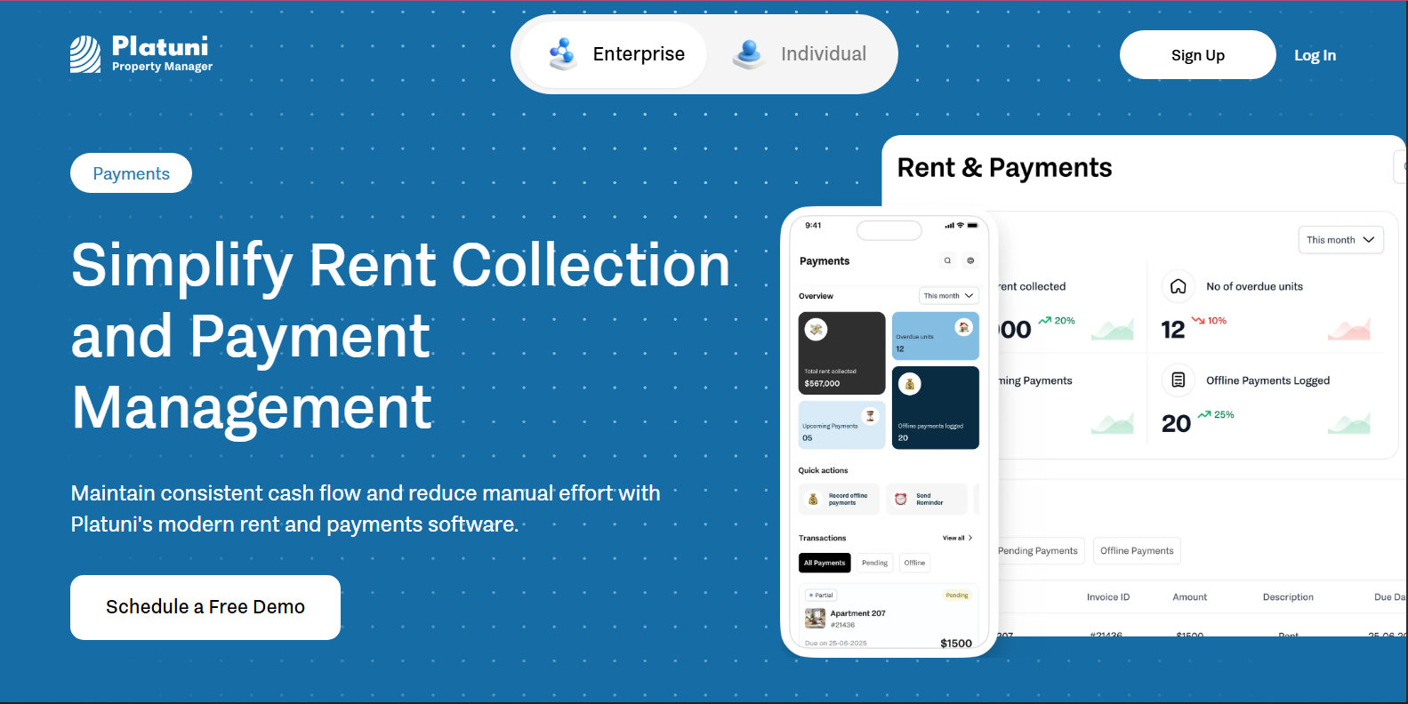 Platuni is a modern property management software designed for landlords, property managers, and shared-living operators. Unlike traditional tools, Platuni focuses on tenant coordination, automation, communication, and workflow management, making property management faster and easier. Key Features: